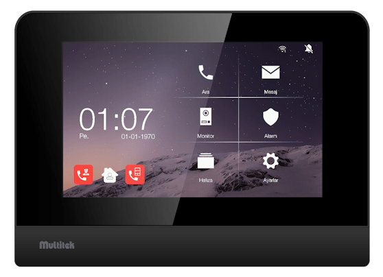 Kolay kullanımlı 7″ dokunmatik ekran, dahili alarm özelliği, mükemmel ses ve görüntü kalitesi, daireler arası sınırsız iletişim